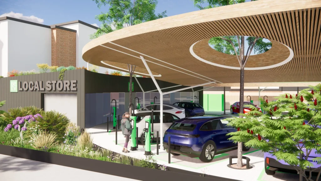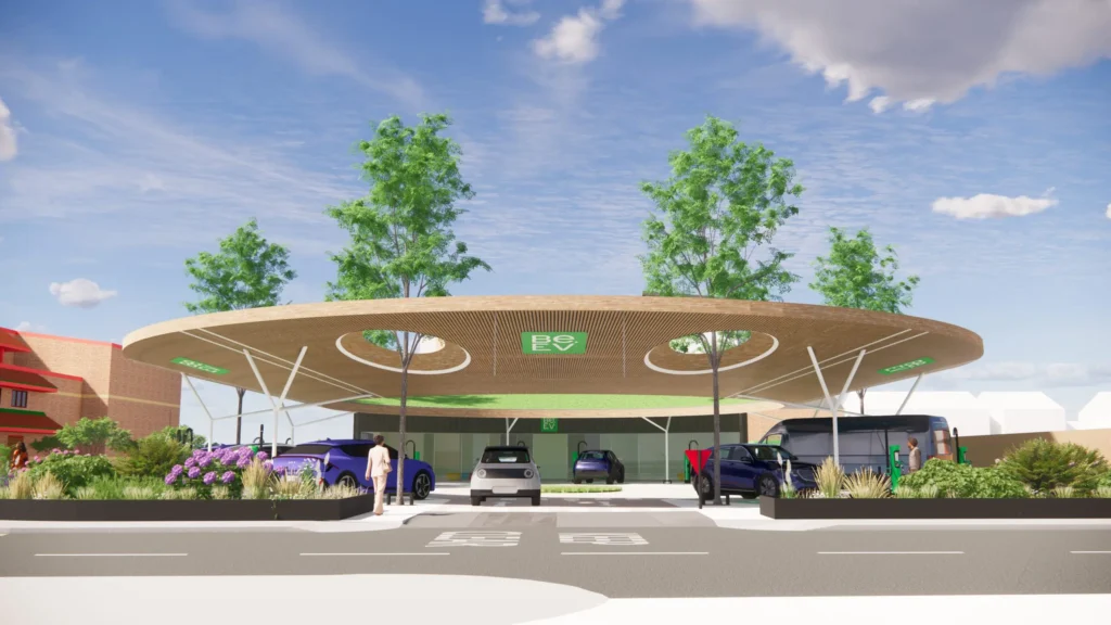 Located on Reliance Street in Manchester, The Oasis is a forward-thinking EV charging destination developed by Be.EV. With twelve charging units installed across the site, the scheme brings together robust infrastructure, efficient services and a high-quality retail space, designed to support the United Kingdom’s transition to electric mobility.